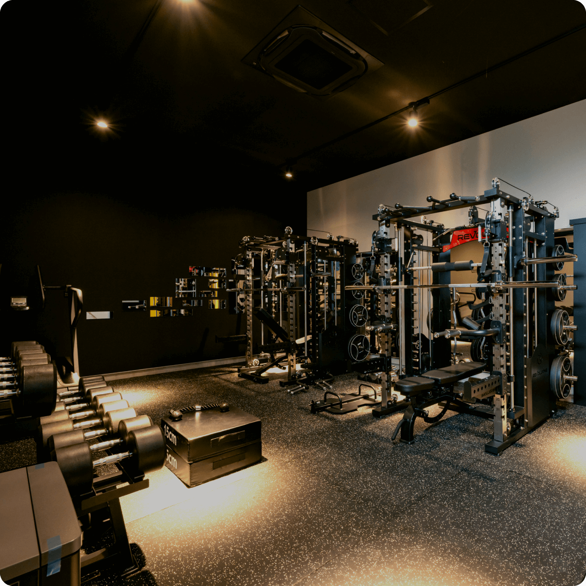 無駄なく動いて、ととのう準備を。オールインワンスミス2台・ランニングマシン1台を備えたコンパクトジム。混雑を避けて、短時間でも効率的に。運動後はそのままサウナや温泉へ。